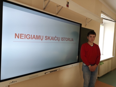 Spalio 19 dieną Visagino „Žiburio“ pagrindinės mokyklos 7b klasės mokiniai dalyvavo STEAM matematikos pamokoje, kurios tema „Matematika linksmai“. Mokiniai, dirbdami grupėmis, iš įvairių šaltinių rinko informaciją tema „Neigiamų sveikųjų skaičių atsiradimo istorija“, parengė pranešimą ir pristatė jį klasės draugams. Ruošdami pranešimus, septintokai sužinojo įdomių faktų apie skaičius. Įdomiausias faktas – neigiamieji skaičiai buvo žinomi maždaug II amžiuje prieš Kristų.
